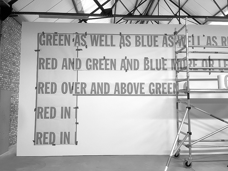 RED AND GREEN AND BLUE MORE OR LESS shows how Weiner’s work can be installed on a wall; can be translated to books, posters or videos; or can be recorded as audio. By bringing about a dialogue between the different presentation forms, visitors are introduced to his multifaceted oeuvre.